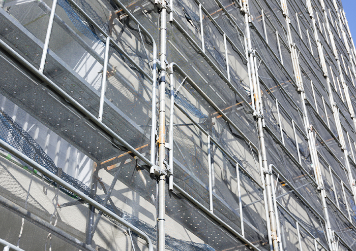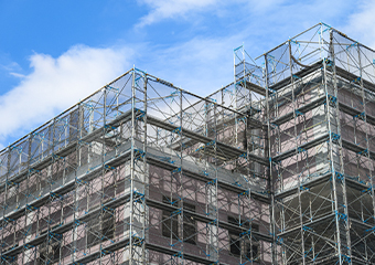 枠組み足場は、高層の作業現場で有効です。大規模改修工事など、マンション・ビルなどの大型物件で必要となってきます。