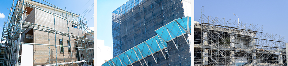 足場で作業を行う方の『安全性』を考慮した足場工事を行います。ニーズや現場に応じ、最適な足場のご提案・組立てから解体まで、ぜひお任せください。
